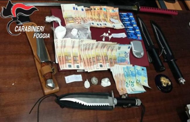 Gli accertamenti analitici eseguiti da personale del Laboratorio Analisi Sostanze Stupefacenti del Comando Provinciale dei Carabinieri di Foggia permettevano di quantificare la sostanza stupefacente sequestrata, circa trenta grammi di “cocaina”, da cui era possibile ricavare 119 dosi e circa un grammo di “marijuana” da cui era possibile ricavare 4 dosi.