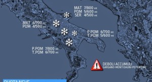 Domani l’entrata di aria più fredda riporterà la neve anche in Puglia e Basilicata ma sempre a quote di medio-alta collina. Possibili imbiancate su monti dauni, appennino lucano e Gargano. false