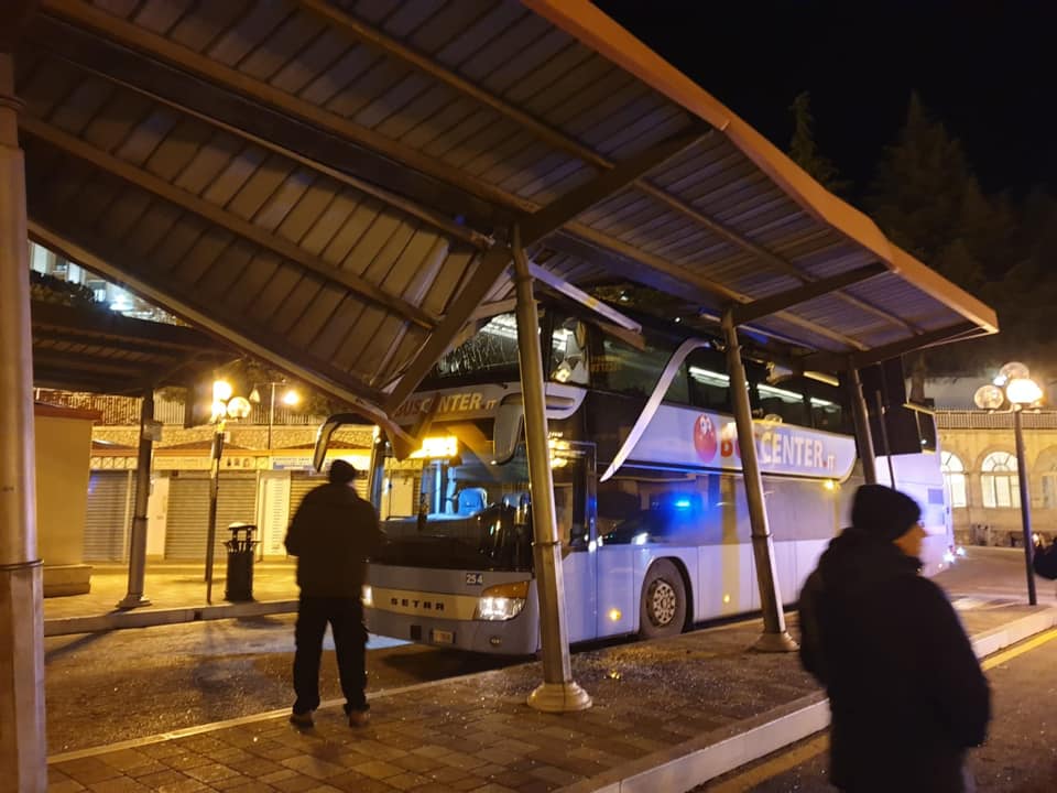 Bus della compagnia “Bus Center” nella serata di ieri ha impattato con la parte superiore la pensilina delle fermate autobus della città di San Pio.