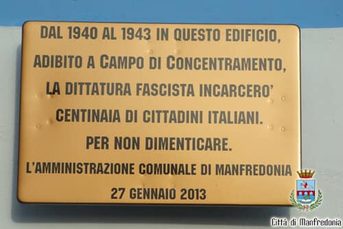 Anche a Manfredonia fu creato un campo di concentramento che, seppur lontano dalle mostruosità che si verificarono in quelli nazisti, era un luogo