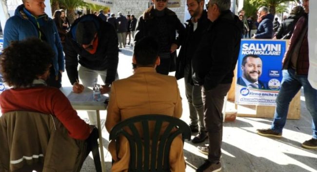 Raccolta firme #SalviniNonMollare. Superate persino le firme di Foggia. È successo a Zapponeta: il gazebo in piazza del fine settimana in favore del m
