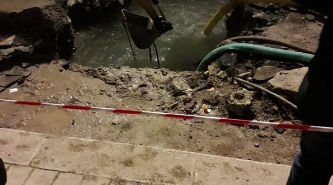 A distanza di 24 ore dalla rottura della tubazione dell’AQP con fuoriuscita di acqua potabile sul manto stradale di Via Tribuna era ancora in corso il lavoro degli operai per la sistemazione della tubazione riconosciuta come “obsoleta”.