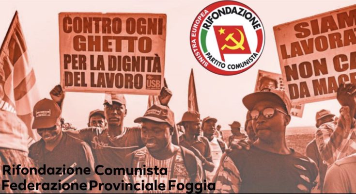 Ieri mattina un auto con a bordo cinque braccianti agricoli stranieri, è uscita  fuori strada, ribaltandosi e causando la morte di uno di loro.Questa tragedia, come tante altre nel passato, era preannunciata e perciò evitabile.E’ sufficiente percorrere le strade provinciali e comunali per rendersi conto, tutti i giorni, delle precarie e pericolosissime condizioni con cui viene trasportata  la cosiddetta “manovalanza nera”, decine di ragazzi  stipati in furgoni e veicoli vecchi e malandati.Molti altri percorrono decine di chilometri in bici o a piedi, ai bordi delle strade, rischiando di essere investiti tutti i giorni.L’isolamento sociale, la carenza di adeguati piani di integrazione, le disumane condizioni di vita e igieniche (in vergognose baraccopoli fatiscenti), causano tutti gli anni una vera e propria strage di braccianti sfruttati dai proprietari terrieri senza scrupoli e dai loro caporali.Del resto se si guarda al WELFARE, anche per tutti gli Italiani, nel nostro Paese manca ancora un piano nazionale per la sicurezza sul lavoro, e si riscontrano, pertanto, notevoli problematiche e gravi inadempienze legislative. L’aumento della precarietà, la paura di perdere il posto di lavoro, ritmi di lavoro sempre più veloci e flessibili sono elementi che hanno reso il lavoro sempre meno sicuro, consegnando lavoratori e lavoratrici al ricatto occupazionale. L’attuale governo, complice di questo stato di fatto, piuttosto che diminuire i fondi per la sicurezza come ha fatto nell’ultima legge di stabilità, dovrebbe stanziare risorse adeguate per contrastare questa drammatica situazione, o per lo meno, con buona pace del ministro Salvini, dovrebbe finalmente iniziare a considerare UGUALI tutti gli sfruttati indipendentemente dal colore della pelle, e reputare “suoi figli” tutti coloro che ogni giorno rischiano la vita per contribuire all’economia del nostro paese.