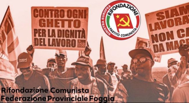 Ieri mattina un auto con a bordo cinque braccianti agricoli stranieri, è uscita fuori strada, ribaltandosi e causando la morte di uno di loro.Questa tragedia, come tante altre nel passato, era preannunciata e perciò evitabile.E’ sufficiente percorrere le strade provinciali e comunali per rendersi conto, tutti i giorni, delle precarie e pericolosissime condizioni con cui viene trasportata la cosiddetta “manovalanza nera”, decine di ragazzi stipati in furgoni e veicoli vecchi e malandati.Molti altri percorrono decine di chilometri in bici o a piedi, ai bordi delle strade, rischiando di essere investiti tutti i giorni.L’isolamento sociale, la carenza di adeguati piani di integrazione, le disumane condizioni di vita e igieniche (in vergognose baraccopoli fatiscenti), causano tutti gli anni una vera e propria strage di braccianti sfruttati dai proprietari terrieri senza scrupoli e dai loro caporali.Del resto se si guarda al WELFARE, anche per tutti gli Italiani, nel nostro Paese manca ancora un piano nazionale per la sicurezza sul lavoro, e si riscontrano, pertanto, notevoli problematiche e gravi inadempienze legislative. L’aumento della precarietà, la paura di perdere il posto di lavoro, ritmi di lavoro sempre più veloci e flessibili sono elementi che hanno reso il lavoro sempre meno sicuro, consegnando lavoratori e lavoratrici al ricatto occupazionale. L’attuale governo, complice di questo stato di fatto, piuttosto che diminuire i fondi per la sicurezza come ha fatto nell’ultima legge di stabilità, dovrebbe stanziare risorse adeguate per contrastare questa drammatica situazione, o per lo meno, con buona pace del ministro Salvini, dovrebbe finalmente iniziare a considerare UGUALI tutti gli sfruttati indipendentemente dal colore della pelle, e reputare “suoi figli” tutti coloro che ogni giorno rischiano la vita per contribuire all’economia del nostro paese.