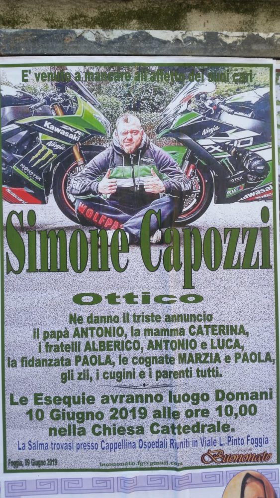 Avranno luogo domani, 10 giugno, nella chiesa Cattedrale di Foggia, i funerali del 30enne Simone Capozzi, deceduto nella tarda mattinata di ieri a cau