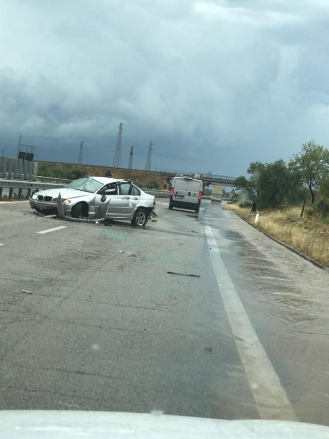 Incidente stradale nei pressi dell’uscita Manfredonia Centro avvenuto durante il forte temporale di questo pomeriggio. Intervenuti i carabinieri, il traffico ha subito un rallentamento. L’auto ha subito forti danni ma, fortunatamente, non si registrano feriti.