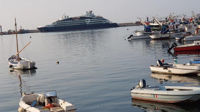 Attraccata questa mattina all’alba al Molo di Ponente del porto di Manfredonia la “Le Bougainville” di Ponant, una nave da crociera tra le più lussuos