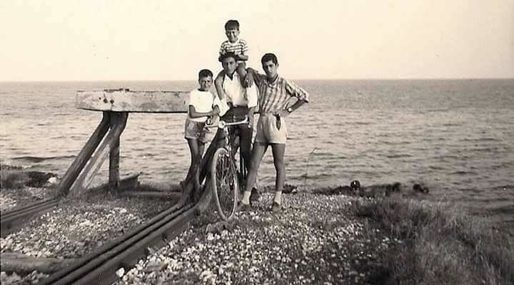 Poi il ponte aveva proprio all’ultimo punto fermo di terra battuta ed erba ai bordi, un’enorme trave di legno ,dallo spessore davvero consistente, stava ad indicare la fermata dei vagoni, ch’era era proprio a picco sugli scogli ricchi delle tante insenature d’acqua di mare “Du tron a mer”- per il commercio di bestiame e roba di vario genere. Ricordo a volte anche per un paio d’ore nel caldo pomeridiano, bloccava l’importante strada per Siponto – spesso quando non c’erano i vagoni mi mettevo a cavalcioni proprio come ci si mette in sella ad un cavallo, su quella trave zozza e unta a volte di grasso scuro ferroviario.