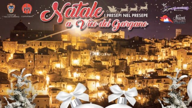 Sul Gargano, è Vico “il paese del Natale”. Dal 6 dicembre 2019, quando in Piazza Castello dalle ore 19 si terrà la “Sagra d’Autunno” a cura della Confraternita del Santissimo Sacramento, e fino al 6 gennaio 2020, il borgo dell’amore diventerà il magico e suggestivo scenario di un fitto calendario di eventi.