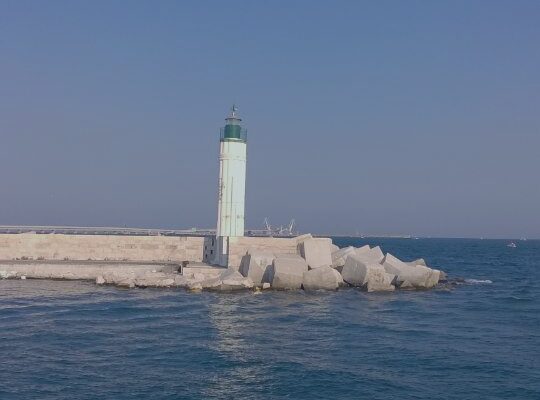 Manfredonia – SCESE dalla barca e venne da me, attraverso il fumo congelante dell’inverno: era dicembre e le onde erano spaccate rigide di gelo, sbattevano contro muro a mattoni dello scalo del faro di Levante, il clima era secco, cavallucci marini alle superficie delle onde biancastre.