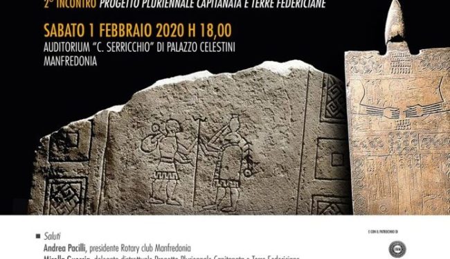 Evento particolarmente importante quello organizzato dal Rotary club di Manfredonia per il giorno sabato 1 febbraio 2020, alle ore 18,00 a Manfredonia presso lʼauditorium “Serricchio” di palazzo Celestini. Lʼevento ha come oggetto le “stele daunie” e la proposta del Rotary di candidarle a bene Unesco (già resa pubblica ad ottobre del 2018). Il giorno 1 febbraio ci sarà unʼospite di eccezione, la dottoressa Maria Luisa Nava, già dirigente Mibact ma soprattutto nota archeologa e principale esperta delle stele daunie, erede degli studi di Silvio Ferri il quale scoprì i noti reperti litici negli anni ʼ60, ora custoditi in vari musei fra i quali eminentemente quello nazionale di Manfredonia.