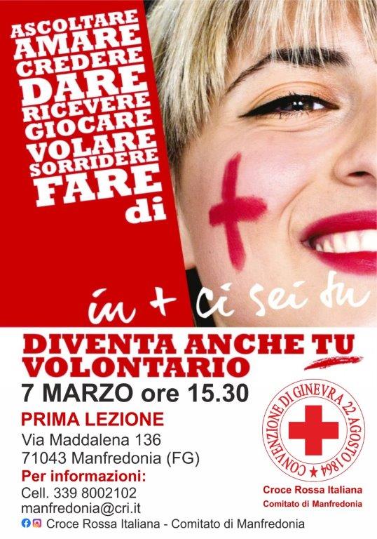 l Comitato di Manfredonia della Croce Rossa Italiana è lieto d’informare la cittadinanza dell’ attivazione del nuovo corso di formazione per volontari della
