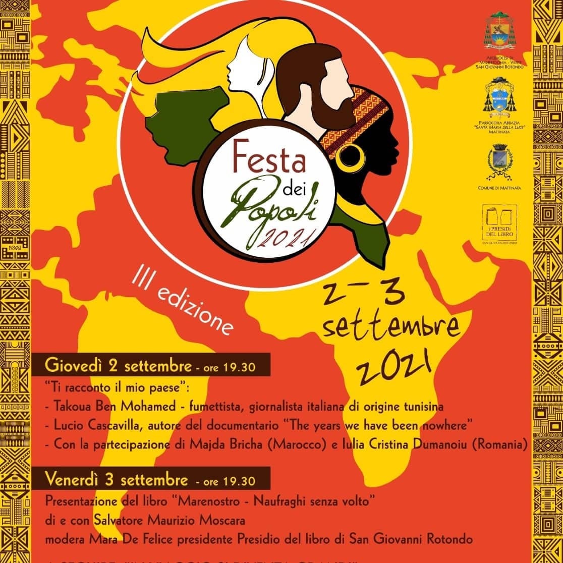 La parrocchia Santa Maria della Luce di Mattinata, con la collaborazione dell’Artcidiocesi di Manfredonia-Vieste-S.Giovanni Rotondo, del Comune di Mattinata e dell’associazione Presidi del Libro, organizza la terza edizione della Festa dei Popoli, quest’anno intitolata ” La mia casa dov’è?”.