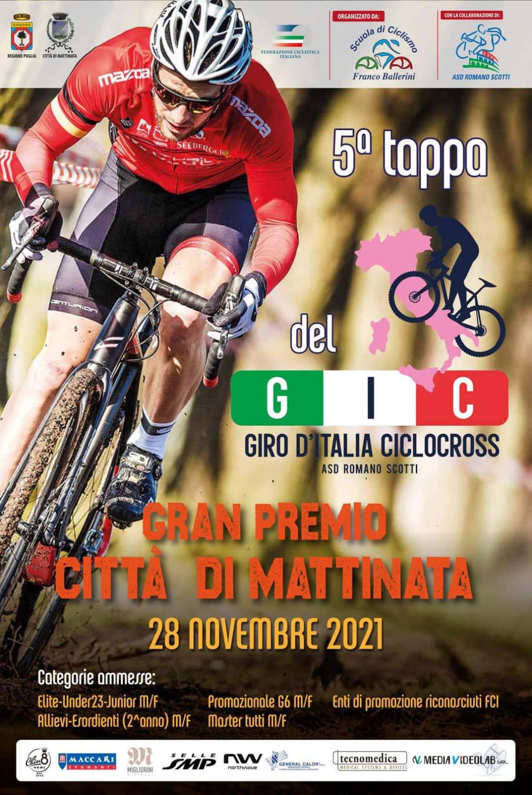 Sabato 27 e domenica 28 novembre 2021, Mattinata ospiterà la V Tappa del Giro d’Italia di Ciclo Cross, disciplina ciclistica, praticata abitualmente in autunno e nei mesi invernali, in attesa della ripresa dell’attività agonistica su strada.