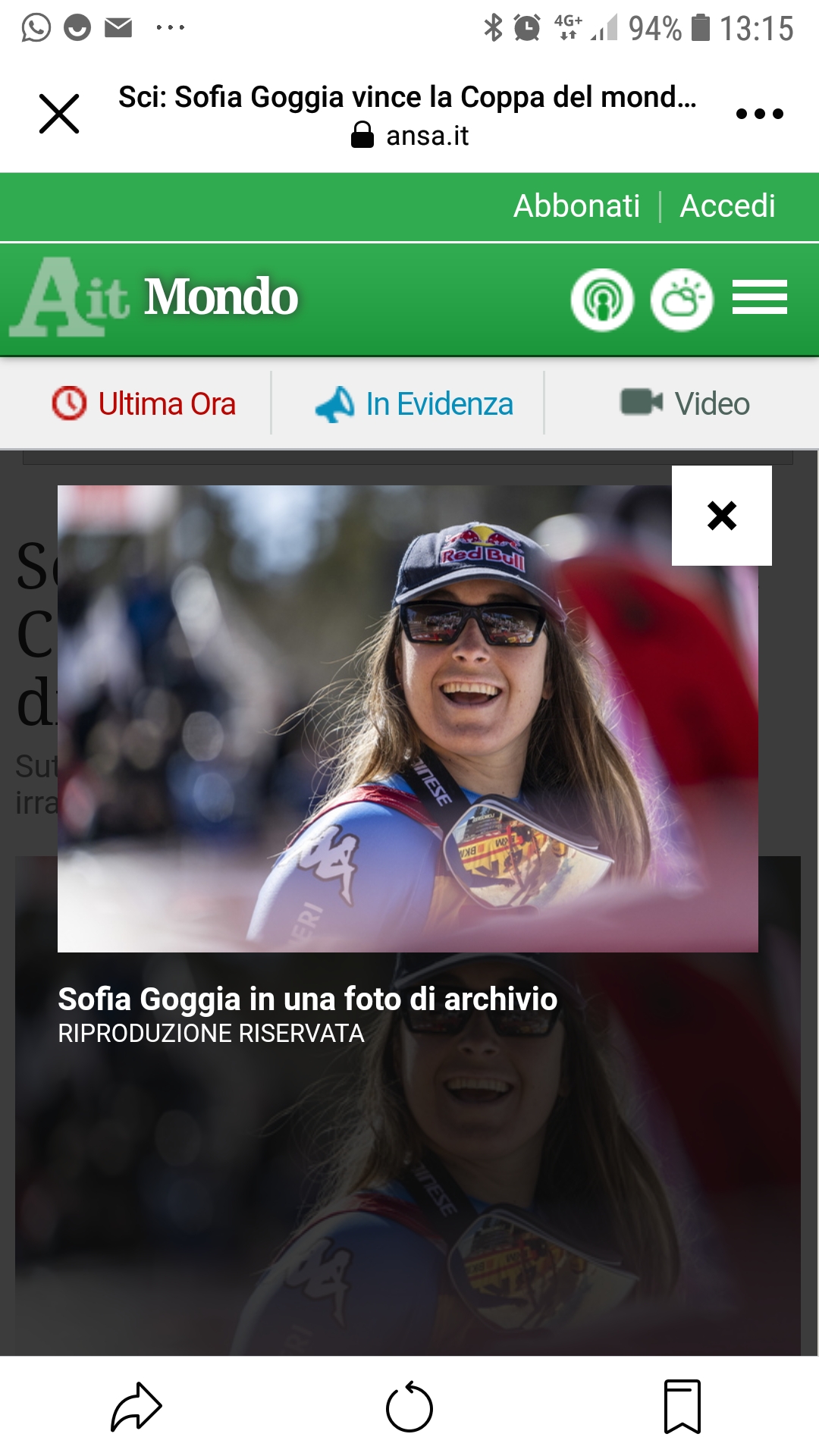 La unica rivale che poteva contenderle il prestigioso trofeo, la svizzera Corinne Suter, in gara con il pettorale tre , ha chiuso la sua prova con il momentaneo quinto tempo che non le consente di superare Goggia, prima in classifica generale con 75 punti di vantaggio sull’austriaca. #ANSA