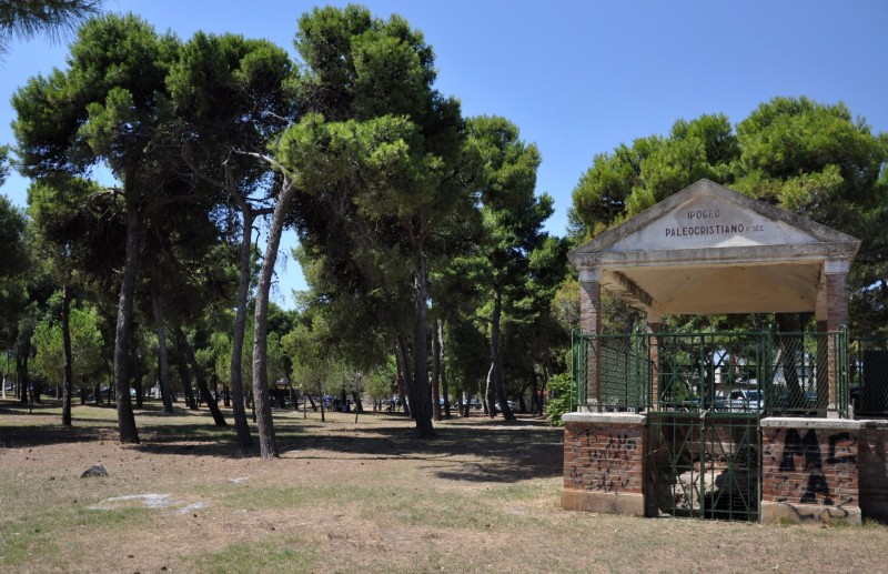 Tornando alla Pineta, da documenti storici  ben circostanziati, si apprende che l’area sepolcrale identificata e non tutta completamente indagata della Siponto moderna,andava dalla marina fino alle mura di cinta della città romana e medievale. Da una lettera dell’allora Soprintendente onorario Can. Prof. Silvestro Mastrobuoni,inviata al Soprintendente Schettini e datata  18/2/1954  si apprende che . “….Altri ambulacri scavati  lungo la via degli Ipogei e un numero imprecisato sotto l’attuale campo da  tennis, tutti disseminati tra le mura e il mare, sulla cui riva sono  evidenti resti di un arcosolio…..Ancora venti e piu tombe intatte …si  notano nella pineta.”
