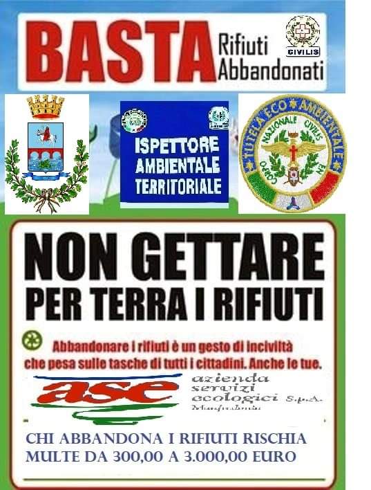 «L’OBIETTIVO dell’iniziativa “Basta rifiuti abbandonati” – spiega Marasco – non è solo quello di ricordare ai cittadini quali sono i servizi che il Comune attraverso l’azienda servizi ecologici (ASE), mette loro a disposizione per disfarsi di tutto quello che non si ritiene più utile, ma diffondere nella comunità la consapevolezza che abbandonare rifiuti al di fuori dai luoghi prefissati e con le modalità stabilite, è un gesto molto grave, una pratica incivile che occorre debellare con l’impegno di tutti. È questione di responsabilità, di partecipazione al mantenimento dell’igiene pubblica, al decoro cittadino. Una esigenza ancor più avvertita nella prospettiva dell’ormai alle porte stagione turistica».