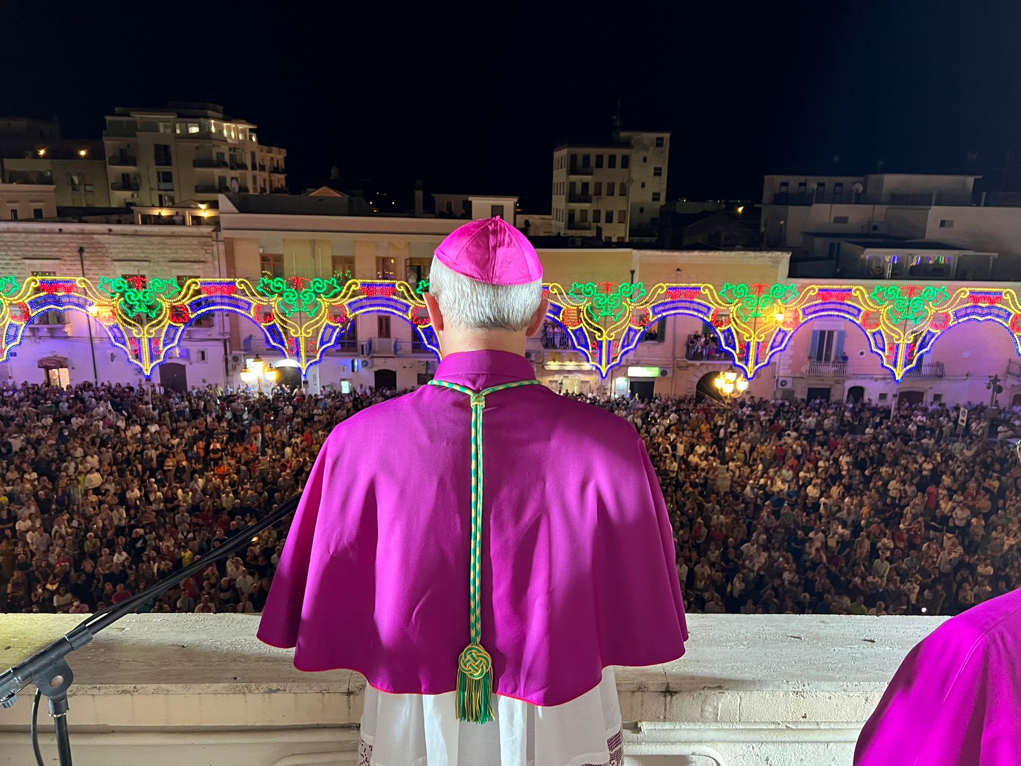 Faccio appello alla città vera, sapiente e pulita che costituisce l’anima di Manfredonia, che proviene dalla sua storia bimillenaria e dalla sua fede, che da secoli ha visto nella Madonna di Siponto la sua Regina. Con l’indicare in Maria la Regina si rafforza non solo il credere, ma anche l’identità civica, basata sulla logica politica espressa da Maria nel suo canto del Magnificat. E’ il Magnificat la teologia della storia che parte dal basso, dagli ultimi, dai poveri, che solleva e costruisce, rende solidali, non scarta nessuno, dà a tutti il giusto ed edifica il bene di tutti. Il Magnificat rappresenta, nel deserto della cultura globalizzata, che smaterializza e detemporalizza le relazioni vitali, un manifesto politico-religioso per un nuovo umanesimo, che non calpesta la dignità di nessuno, che valorizza le diversità e rilancia la dimensione comunitaria di ogni agire individuale e collettivo. Guardando a Maria Regina e donna della carità politica del Magnificat, scopriamo l’identità comune che parte dai poveri e dagli ambienti più diseredati, non come un peso o semplice emergenza da risolvere, ma come fondamenta per progettare e costruire l’anima pensante ed il cuore pulsante della nostra amata città. E’ dal Magnificat che si trova l’identità che non scarta nessuna persona, nessuna famiglia, nessun territorio o periferia, ma che sa recuperare e trovare motivazioni per fare della politica un servizio, dell’economia una ricchezza condivisa e volano di sviluppo, delle Istituzioni strumenti del bene comune e della Chiesa l’anima di un amore disinteressato e gratuito che apre alla trascendenza e da questa alla fraternità universale e all’amicizia sociale, fino ad abbracciare l’intero creato che con la sua bellezza oggi invoca da noi una autentica ecologia integrale.