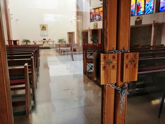 SULLE PRIME c’è stato un certo sconcerto nel vedere l’ingresso della chiesa chiusa con catena e lucchetto. Anche questo evidentemente un segno dei tempi. Non fa parte di nessuna liturgia ma l’apposizione di una solida catena serrata da un robusto lucchetto, per bloccare l’entrata della chiesa della Santissima Trinità, alla periferia est della città, non lo si era nemmeno immaginato.