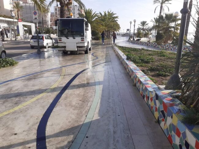 Il primo intervento di pulizia ed igienizzazione è stato svolto su Viale Miramare e, d’ora in poi, in virtù di una calendarizzazione con ASE, la lavastrade interesserà tutte le zone della città per una Manfredonia più pulita e decorosa, confidando anche su una maggiore collaborazione dei cittadini e di un loro migliore senso civico.