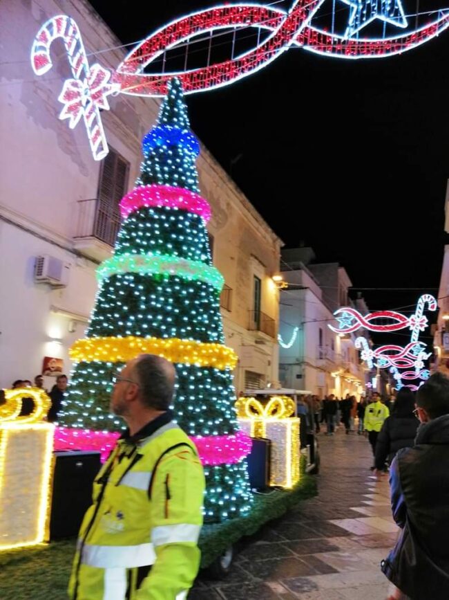 AVEVANO pensato le cose in grande i “partitaiva”. A cominciare dall’ancorare una riproduzione in scala del celeberrimo transatlantico “Titanic” nel fossato del castello ove è stata eretta anche la Casa di Babbo Natale; riempiendo i giardini del castello di sagome di animali e oggetti vari illuminati con colori sgargianti; adornando il corso Manfredi con festoni luminosi; e organizzando sfilate di carri intonati alla ricorrenza natalizia. Un richiamo indubbiamente affascinante che in effetti ha fatto presa facendo arrivare frotte di visitatori anche da province lontane.