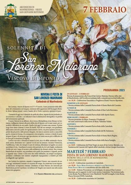 7 Febbraio – San Lorenzo Maiorano – ORE 8.30 – Celebrazione eucaristica in Cattedrale. – ORE 10.30 – SANTA MESSA STAZIONALE, PRESIEDUTA DALL