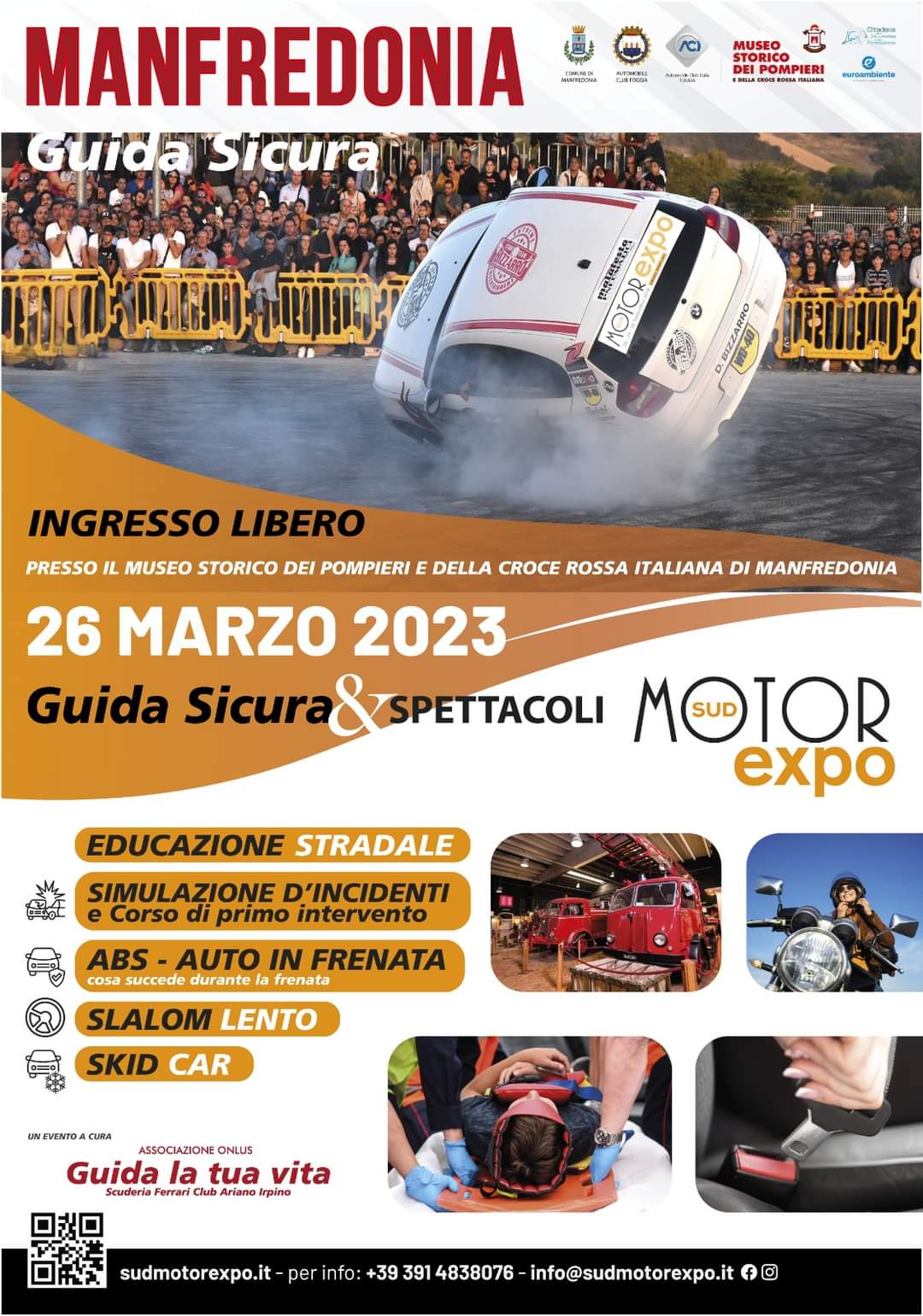 Domenica 26 marzo parte da Manfredonia il tour in Puglia del “Sud Motor Expo 2023” con “Guida Sicura”, progetto promosso ed organizzato dall’Associazione Onlus “Guida la tua vita”, presieduta da Alberto Scaperrotta.