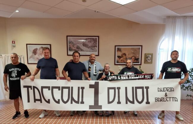 Ad accogliere la delegazione dei due Club, la moglie del portierone bianconero, Laura. Una lunga chiacchierata nel ricordo di una festa di dieci anni fa per celebrare il decennale del Club andriese alla presenza proprio di Tacconi. Sorpresa nella sorpresa lo striscione a lui dedicato che recitava “Tacconi 1 di noi