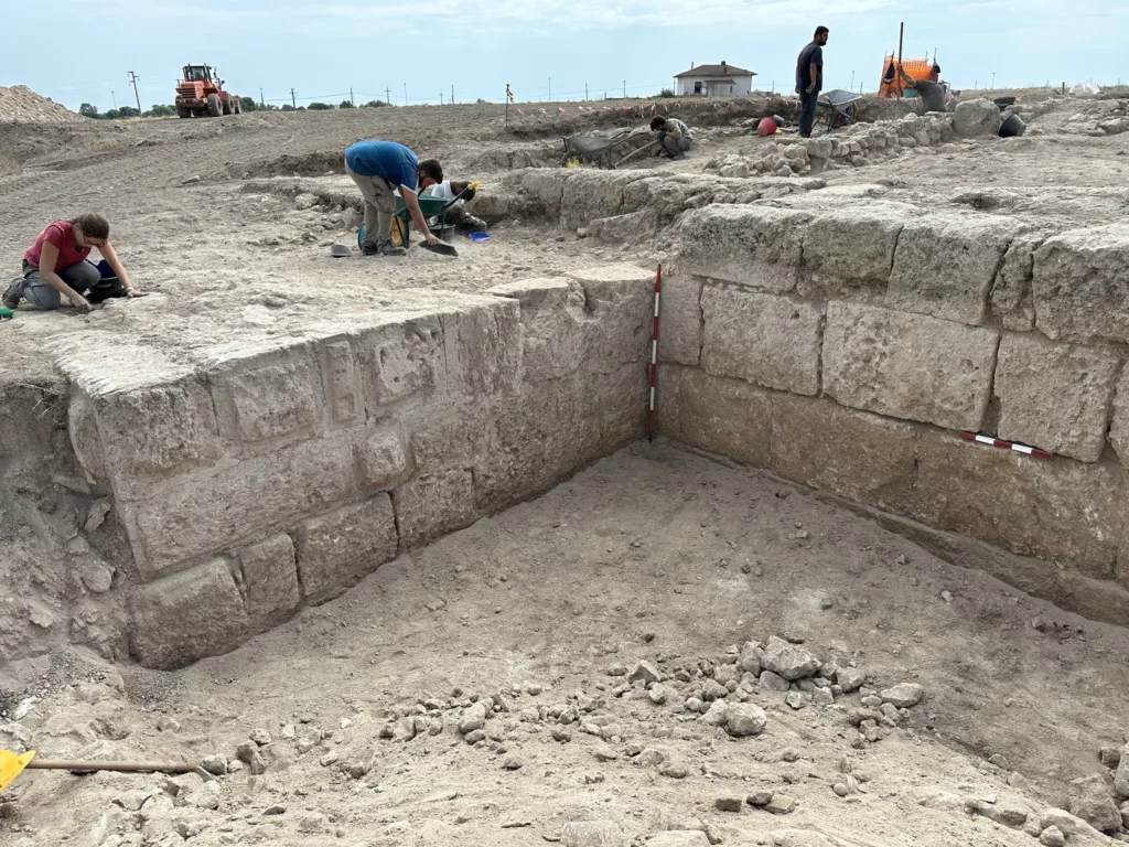 Una delle novità più significative di questa seconda settimana di scavi è la stata l’individuazione e l’esposizione, al di sotto di uno spesso e potente strato di macerie, di un ampio tratto delle mura urbiche di Siponto, risalenti al momento della fondazione della colonia romana nel II secolo a.C. e oggetto di vari interventi di rifacimento, nella zona prossima all’anfiteatro.