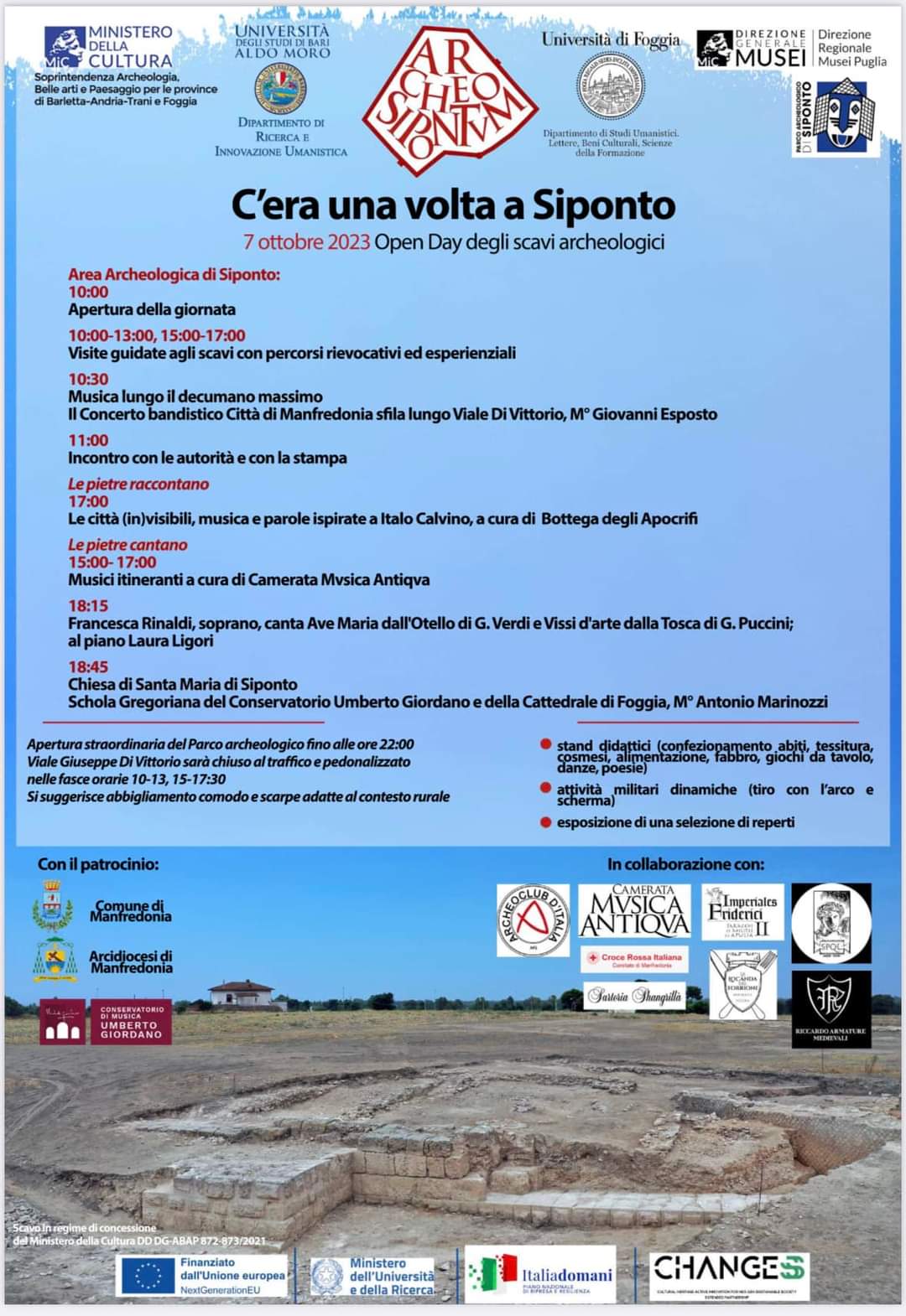 C’ERA UNA VOLTA SIPONTO❗️ Open day degli scavi archeologici 7 ottobre 2023 Anche quest’anno le scoperte di Siponto saranno visitabili con l’ausilio degli archeologi. Tra musica e divertimento, accompagnati da figuranti in costume, potremo riscoprire la storia di questa antica città. Vi aspettiamo!