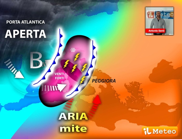 Quando si dice che la “porta atlantica” è aperta significa che le perturbazioni in arrivo dall’oceano non hanno alcun ostacolo per raggiungere l’Italia. Sarà così anche nei prossimi sette giorni.