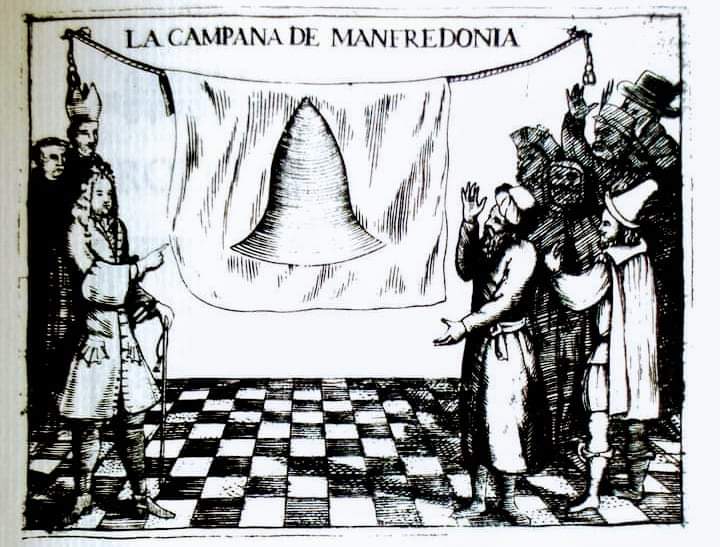 Quando Re Manfredi decise di fondare la nostra città, volle dotarla di una sorta di ‘allarme’, poiché, essendo ancora sprovvista di cinta muraria, poteva facilmente essere esposta per terra e per mare agli attacchi dei nemici. Decise così di dotarla di una campana. Non una qualsiasi: una campana enorme, i cui rintocchi dovevano sentirsi a miglia di distanza: “Ordinao che se facesse una campana grossissima che se sentisse cinquanta miglia dentro la terra, a tal che havesse potuto venire soccurso, se Manfredonia fosse stata assaltata da nimici, mentre che era poco habitata”, scrisse lo storico Matteo Spinelli, suo contemporaneo.