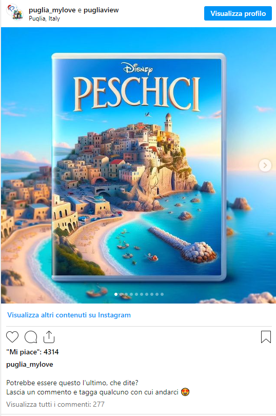 In particolare su Instagram la pagina puglia_mylove posta ciclicamente questi lavori sapientemente realizzati in grafica. Ecco una carrellata ricca di questi post dal sapore fiabesco, che rendono ancora più “magica” una terra come la Puglia.