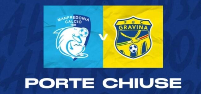 Il Manfredonia Calcio 1932 comunica che l’incontro di calcio Manfredonia-Gravina, in programma mercoledì 20 dicembre 2023 alle ore 14:30 presso lo Stadio Miramare e valido per la 14^ giornata del campionato di Serie D girone H verrà disputato a porte chiuse, come da Ordinanza Prefettizia num. 13 del 20/12/2023 arrivata via PEC alle ore 08:49 di questa mattina.