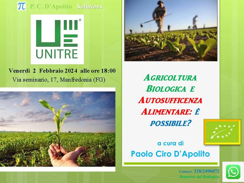 Conferenza sull’Agricoltura all’Unitre di Manfredonia ‘‘ Agricoltura Biologica e Autosufficenza alimentare: è possibile?’’  L’Unitre di Manf