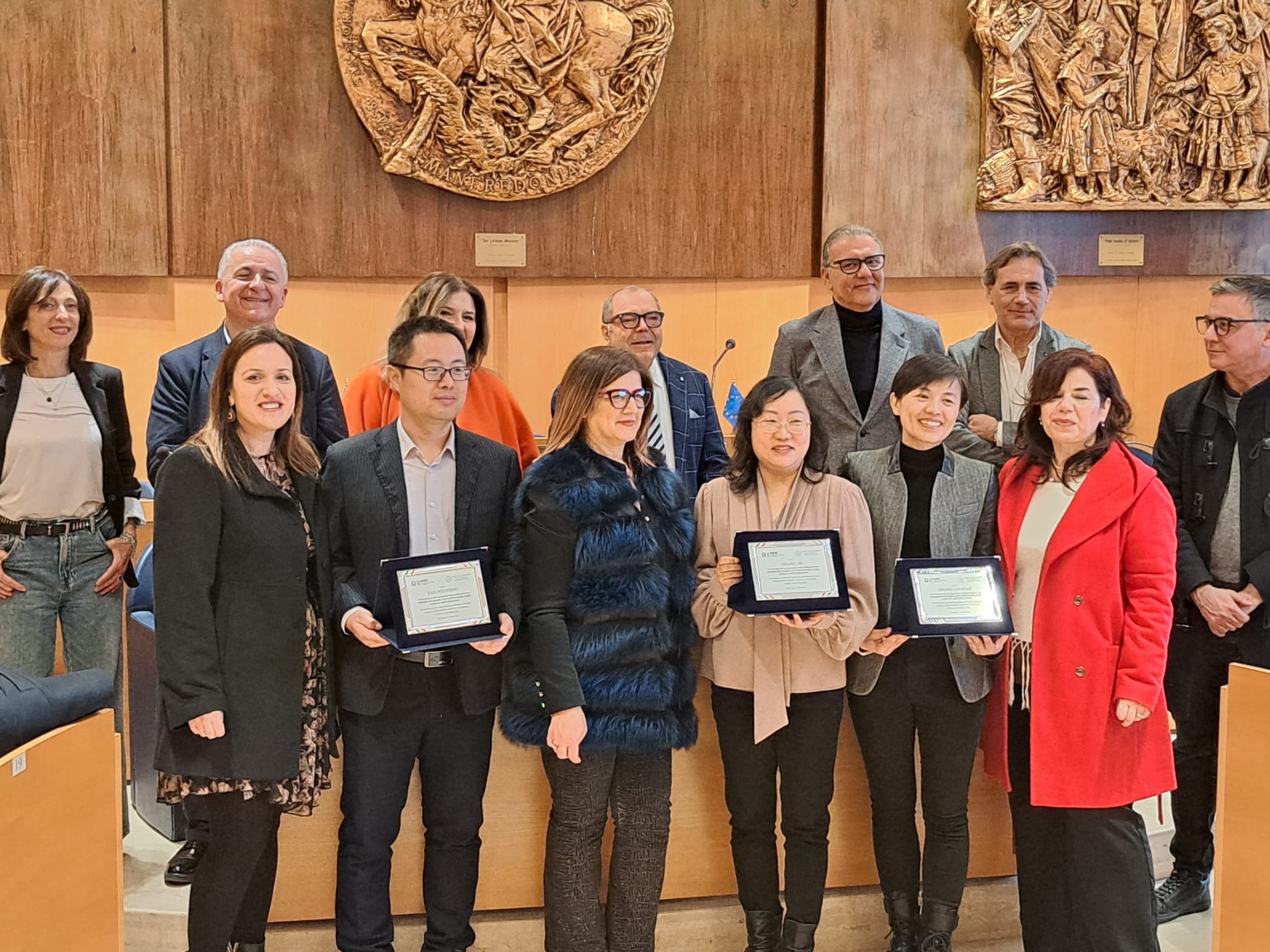 24 studenti e 3 dirigenti delle High School della città cinese di Qingdao, provenienti dalla provincia dello Shandong, sono stati ricevuti a palazzo San Domenico, dove, dopo i saluti istituzionali, hanno formalizzato il gemellaggio con un cerimoniale che ha avuto luogo nella Sala Consiliare del Comune di Manfredonia, presenti anche il consigliere regionale Paolo campo e l Onorevole Giandiego Gatta.