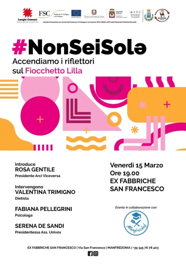 In occasione della giornata nazionale del fiocchetto lilla, l’associazione Arci Viceversa in collaborazione con Manfrechef invita la cittadinanza ad un momento di discussione, sensibilizzazione e riflessione sul tema dei disturbi dell’alimentazione.