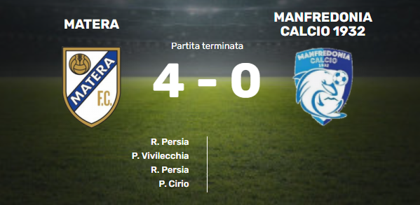 Finisce così. Torniamo da Matera con una brutta sconfitta, i padroni di casa si impongono per quattro reti a zero. Si interrompe a 6, la striscia di risultati utili consecutivi. Seconda sconfitta esterna in campionato dopo quella di Martina alla prima giornata.