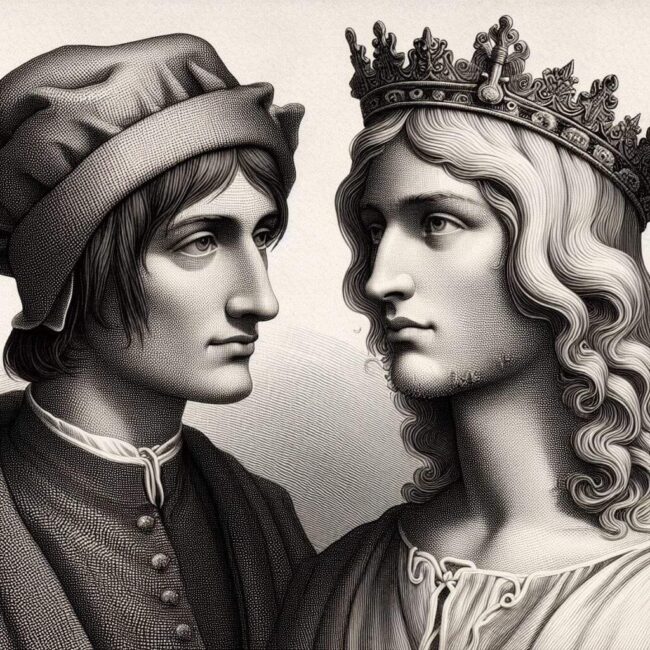 Nei suoi affascinanti versi, Dante Alighieri dipinge un ritratto vibrante di Manfredi, il re biondo, bello e di gentile aspetto, che, nonostante le scomuniche, si affida alla misericordia divina con nobiltà d’animo.