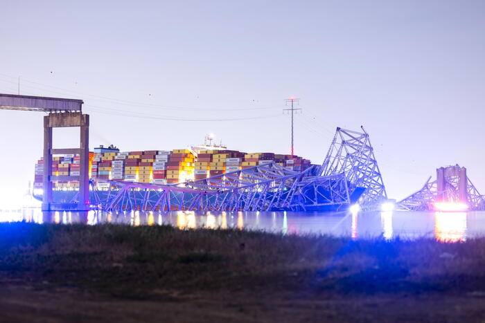 Il ponte Francis Scott Key di Baltimora, nello Stato americano del Maryland, è crollato nella notte in seguito all'urto con una nave cargo battent