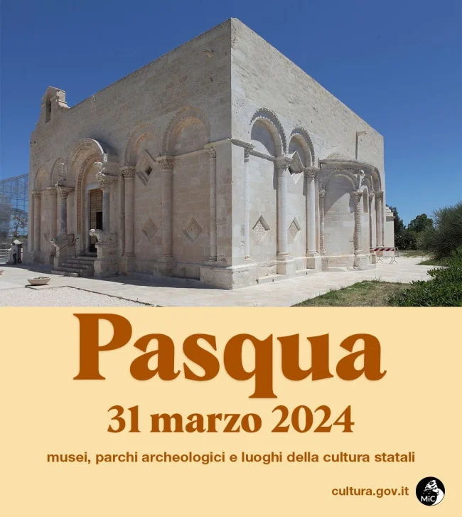 APERTURE DI PASQUA E PASQUETTA In occasione delle festività pasquali, il Parco Archeologico di Siponto sarà aperto con i seguenti orari: Domenica 31 Marzo ore 9.00 – 18.00, ultimo ingresso 17.30 Lunedì 1 Aprile ore 10.30 – 19.30, ultimo ingresso 19.00
