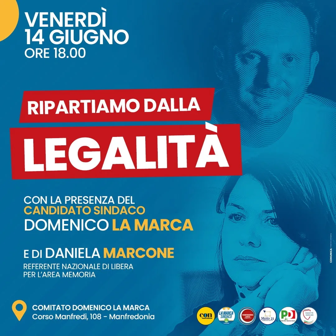 Venerdì 14 giugno, alle ore 18.00 presso il mio comitato, dialogherò con Daniela Marcone, figlia di Francesco Marcone, ucciso dalla criminalità organizzata foggiana nel 1955, già vice-presidente nazionale di Libera e referente nazionale del settore memoria dell’associazione di Don Luigi Ciotti.