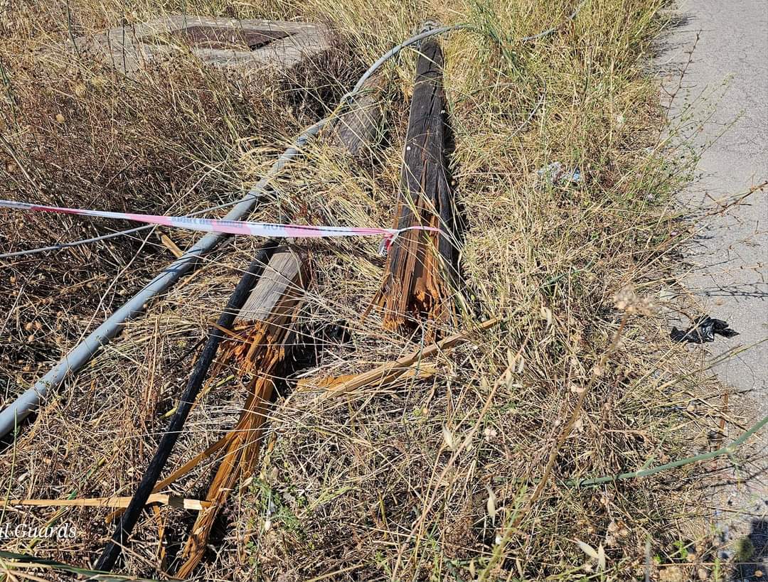 Manfredonia 24 luglio 2024 Palo del telefono abbattuto, cavo sulla strada e l'ente responsabile non interviene!?Palo del telefono abbattuto dopo