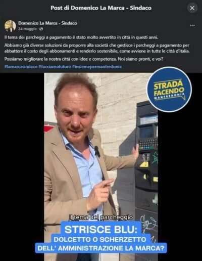 Era il 24 maggio scorso e con la massima sicumera il sindaco La Marca (allora candidato) si esprimeva sui social e testate giornalistiche a proposito del tema dei parcheggi a pagamento con la promessa di avere la celere soluzione ai vincoli capestro contenuti nell’affidamento per mano delle Commissione Straordinaria a novembre 2021, due giorni prima del ballottaggio che ha eletto sindaco l’Ing. Gianni Rotice.