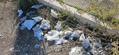 Sacchi di fazzoletti e preservativi disseminati ovunque, nell’area antistante l’ex centro sperimentale fotovoltaico su monte Aquilone (area protetta PNG).
