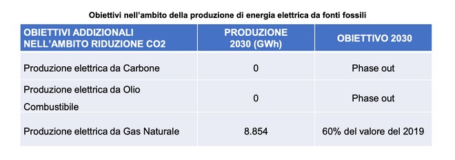 Accanto alla promozione delle FER, è indispensabile ridurre la produzione di elettricità da fossili, con i seguenti target: