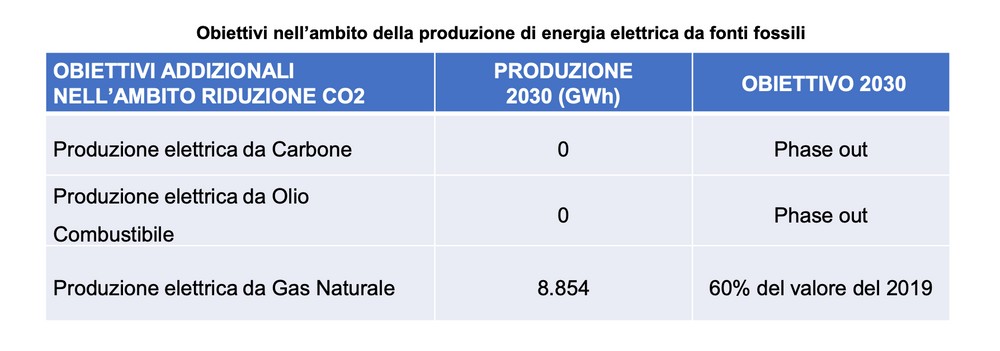 Accanto alla promozione delle FER, è indispensabile ridurre la produzione di elettricità da fossili, con i seguenti target: