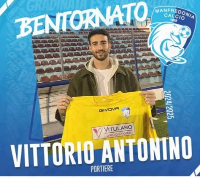 Il Manfredonia Calcio 1932 comunica di aver tesserato Vittorio Antonino, portiere classe ‘98. Per Antonino si tratta di un ritorno in maglia b