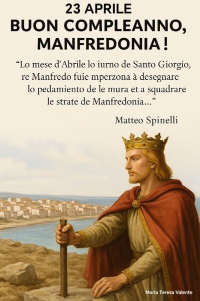 “Lo mese d’Abrile lo iurno de Santo Giorgio, re Manfredo fuie mperzona à desegnare lo pedamiento de le mura et a squadrare le strate de Manfredonia…”