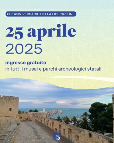 In occasione dell’° , venerdì 25 aprile il Museo archeologico nazionale e castello di Manfredonia sarà visitabile gratuitamente.